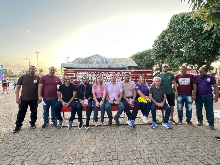 Prefeito Bruno Mineiro inaugura na Praça Saturnino, o Banco Vermelho, símbolo de luta contra a violência de gênero